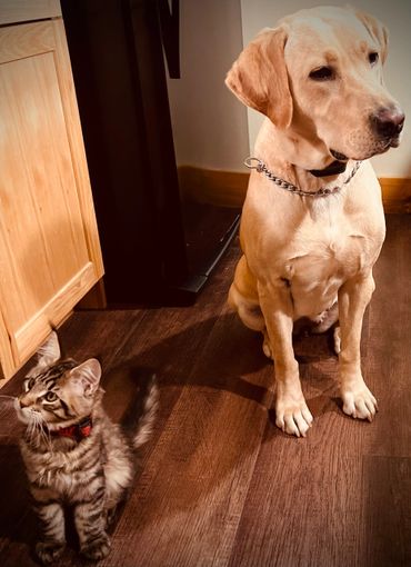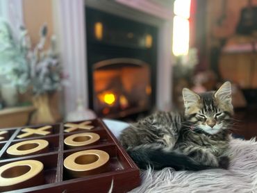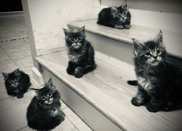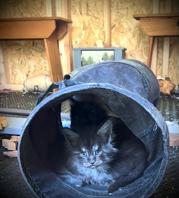 Our Maine Coon kittens are raised in a loving, nurturing and wholesome environment full of quality time from our family, as well as frequent visits from friends to help with the socialization process. We also have a yellow lab to help the kittens get used to a dog. We also make sure to acclimate the kittens to familiar household noises such as the vacuum and garage work. We take pride in providing the kittens with an abundance of love and exposure to many things.